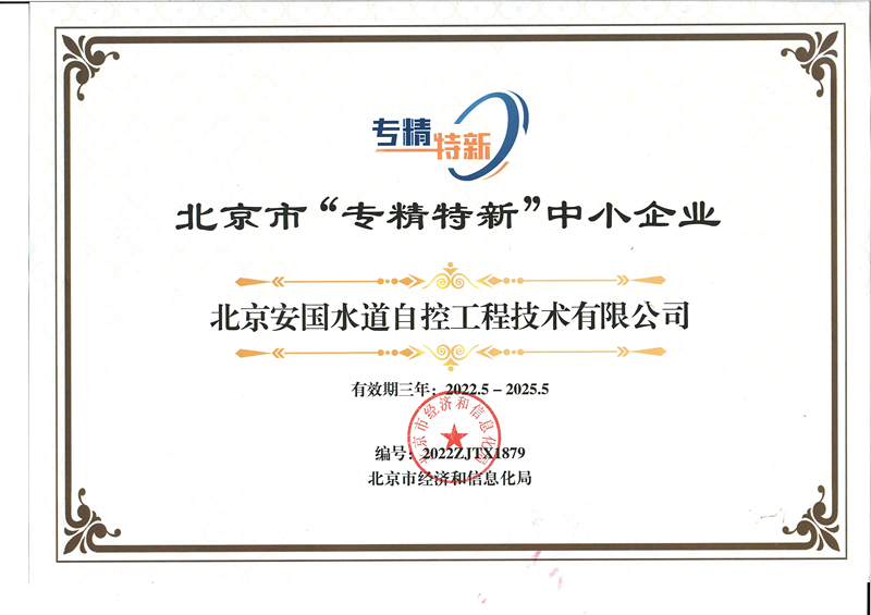 • 喜訊/安國水道獲得“北京市專精特新中小企業(yè)”稱號
