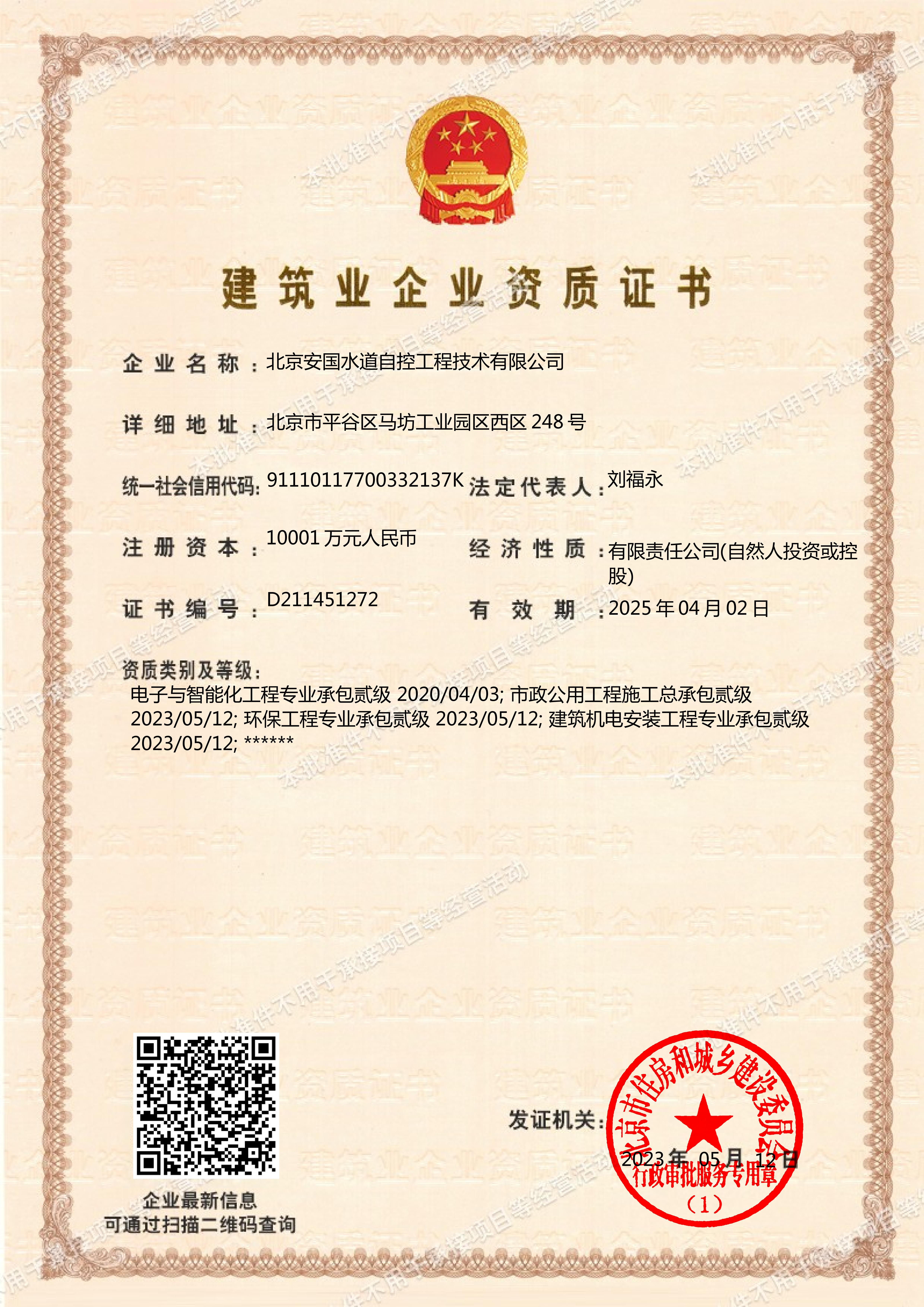 • 北京安國水道自控工程技術(shù)有限公司入駐中國給水排水品牌委員會